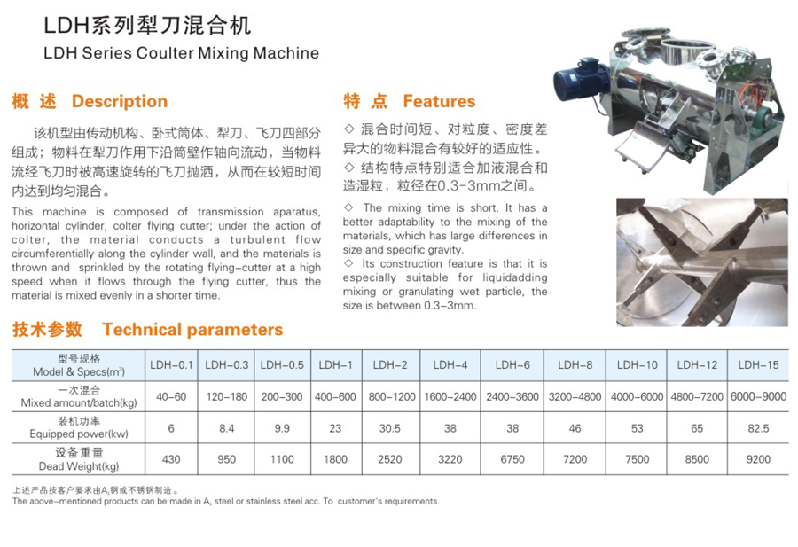 犁刀式混合機廣泛用于干粉砂漿、化工、農(nóng)藥、洗滌劑、顏料食品、味精、奶粉、食鹽、飼料、化學品、陶瓷、塑料、橡膠添加劑等粉料的干燥與混合。